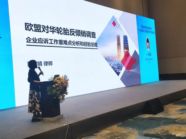 北京金誠同達律師事務所律師童靖婧做了《歐盟對華輪胎反傾銷調(diào)查—企業(yè)應訴工作重難點分析和經(jīng)驗總結》報告,她介紹說,傾銷幅度抗辯核心精準核算生產(chǎn)要素成本(如天然橡膠價格、能耗數(shù)據(jù)),合理選擇“替代國”參照標準以降低傾銷邊際認定提交證據(jù)需符合歐盟格式要求,包括中英文雙語財務審計報告及完整供應鏈憑證。產(chǎn)業(yè)損害抗辯要點證明中國輪胎未對歐盟產(chǎn)業(yè)造成實質(zhì)性損害:對比市場份額變化、利潤趨勢及本土產(chǎn)能利用率數(shù)據(jù)。聯(lián)合下游歐盟進口商發(fā)聲,強調(diào)加征關稅對歐洲消費者和汽車產(chǎn)業(yè)的負面連鎖影響。應訴流程優(yōu)化建議。