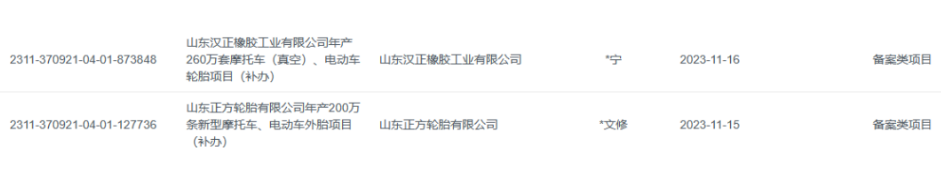 【炭黑產(chǎn)業(yè)網(wǎng)】11月21日消息,近日,山東省投資項目在線審批監(jiān)管平臺發(fā)布了兩項新的投資項目備案信息,分別涉及山東漢正橡膠工業(yè)有限公司的“年產(chǎn)260萬套摩托車(真空)、電動車輪胎項目”和山東正方輪胎有限公司的“年產(chǎn)200萬條新型摩托車、電動車外胎項目”。這標志著兩家公司正在擴大其輪胎生產(chǎn)的規(guī)模。