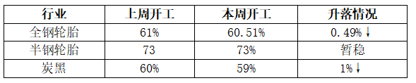 輪胎及炭黑行業(yè)開工情況統(tǒng)計(jì)表
