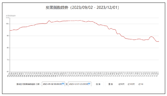 炭黑產(chǎn)業(yè)網(wǎng)根據(jù)市場N330/N220/N550三個(gè)牌號最新市場成交價(jià)格,并分別按一、二、三線品牌權(quán)重分配計(jì)算后得出今日最新炭黑指數(shù)為90.33,與上周相比本周炭黑指數(shù)呈微揚(yáng)后抑表現(xiàn)。