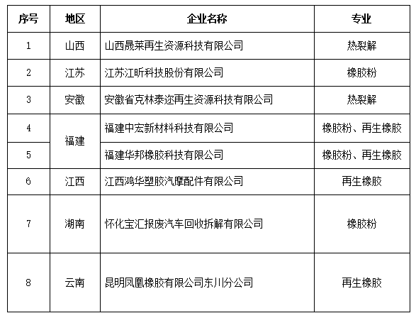 符合《廢舊輪胎綜合利用行業(yè)規(guī)范條件》企業(yè)名單(第四批)