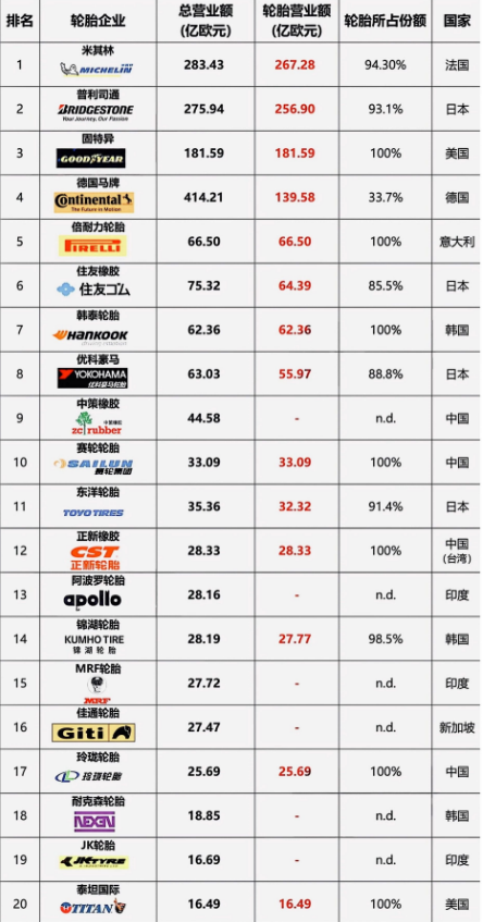 全球輪胎20強(qiáng)揭曉,米其林、普利司通穩(wěn)固霸主地位