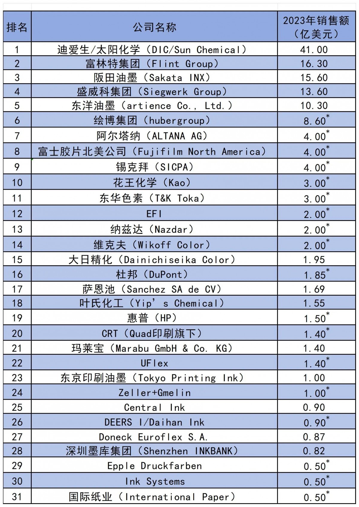 2024全球油墨企業(yè)排行揭曉:前十強引領行業(yè)八成份額