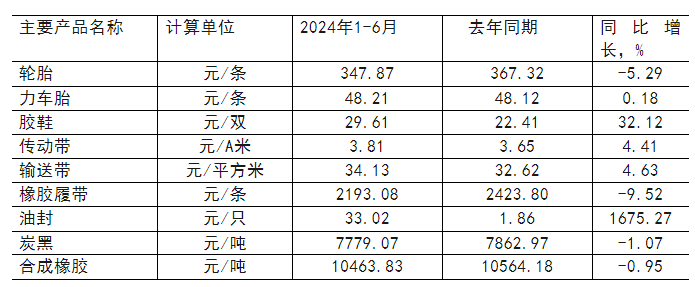 表2 2024年1-6月浙江省橡膠工業(yè)主要產(chǎn)品出口單價(jià)表