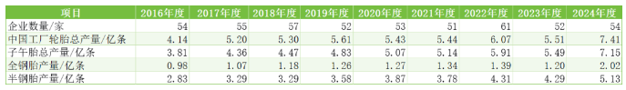 表2 2016~2024年度中國輪胎排名企業(yè)產量情況