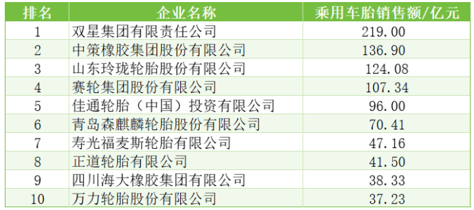 表12 2024年度中國乘用車輪胎企業(yè)10強