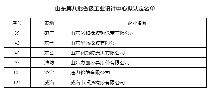 六家橡膠企業(yè)榮獲山東省級工業(yè)設(shè)計中心認(rèn)定