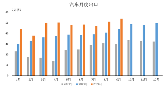 2024年9月,汽車出口53.9萬輛,環(huán)比增長5.4%,同比增長21.4%。2024年1-9月,汽車出口431.2萬輛,同比增長27.3%。
