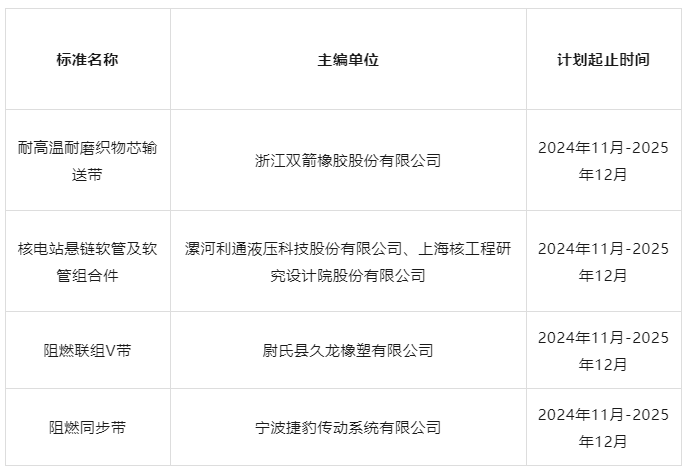 近日,中國(guó)橡膠工業(yè)協(xié)會(huì)組織召開了團(tuán)體標(biāo)準(zhǔn)線上立項(xiàng)論證會(huì)。經(jīng)行業(yè)專家審查,按照《中國(guó)橡膠工業(yè)協(xié)會(huì)標(biāo)準(zhǔn)管理辦法》的要求,通過(guò)了《耐高溫耐磨織物芯輸送帶》等四項(xiàng)膠管膠帶團(tuán)體標(biāo)準(zhǔn)的立項(xiàng)論證,同意列入中橡協(xié)2024年下半年團(tuán)體標(biāo)準(zhǔn)項(xiàng)目計(jì)劃。