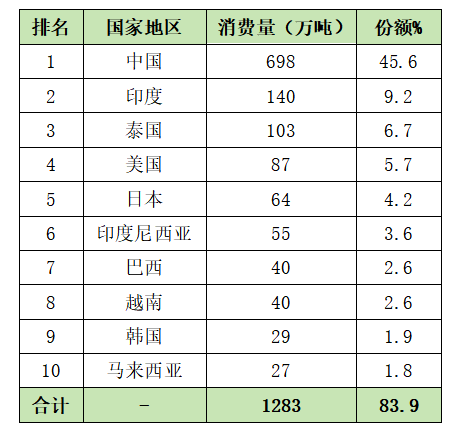 2024年天然橡膠十大消費(fèi)國(guó)