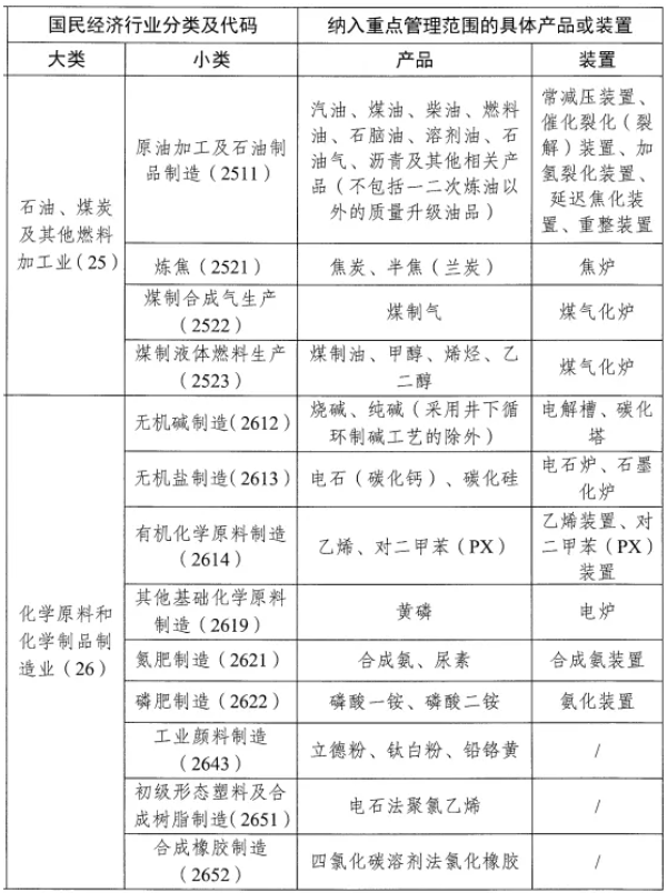 與2024版相比,新版目錄管理范圍增加了生產(chǎn)裝置,刪除了其他煤炭加工、無機酸制造、鉀肥制造、合成纖維單(聚合)體制造、化學試劑和助劑制造等5個子行業(yè)。此外,重點管理的具體產(chǎn)品也做了調(diào)整。