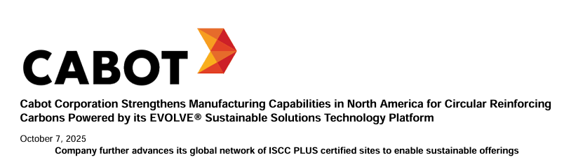 卡博特公司(紐約證券交易所代碼:CBT)于10月7日宣布,已依托其 EVOLVE? 可持續(xù)解決方案技術(shù)平臺,強(qiáng)化北美地區(qū)循環(huán)補(bǔ)強(qiáng)炭黑的生產(chǎn)能力。隨著這一里程碑的達(dá)成,美國路易斯安那州維爾普拉特生產(chǎn)基地正式加入巴西毛阿、捷克共和國瓦拉什斯凱梅濟(jì)日奇(瓦勒梅日奇)生產(chǎn)基地的行列,共同具備經(jīng)驗(yàn)證的循環(huán)補(bǔ)強(qiáng)炭黑生產(chǎn)能力。該循環(huán)補(bǔ)強(qiáng)炭黑采用源自廢舊輪胎的輪胎熱解油為原料,并遵循國際可持續(xù)發(fā)展與碳認(rèn)證(International Sustainability & Carbon Certification,ISCC)PLUS 質(zhì)量平衡方法生產(chǎn)。此外,卡博特已將其全球 ISCC PLUS 認(rèn)證生產(chǎn)基地網(wǎng)絡(luò)拓展至 14 家工廠,在提升經(jīng)認(rèn)證可持續(xù)解決方案供應(yīng)能力的同時(shí),進(jìn)一步推進(jìn)公司對循環(huán)型可持續(xù)經(jīng)濟(jì)的承諾。