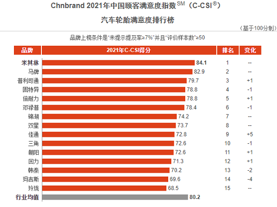 此前,品牌評級權(quán)威機構(gòu)Chnbrand發(fā)布2021年中國顧客輪胎滿意度指數(shù)品牌排名和分析報告。