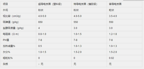 超導(dǎo)電炭黑的使用量為普通炭黑用量的1/2~1/5時(shí),便可達(dá)到相同效果。