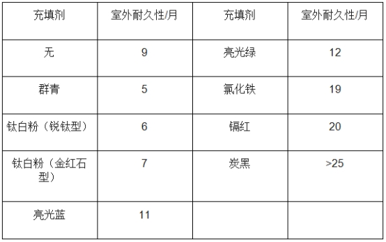 添加炭黑可以顯著提高聚乙烯塑料的耐候性。實(shí)驗(yàn)表明加有不同顏料的聚乙烯塑料的室外耐久性會(huì)有很大的不同,不加顏料的聚乙烯塑料,室外耐久性只有九個(gè)月,而加炭黑的聚乙烯塑料可達(dá)25個(gè)月以上。